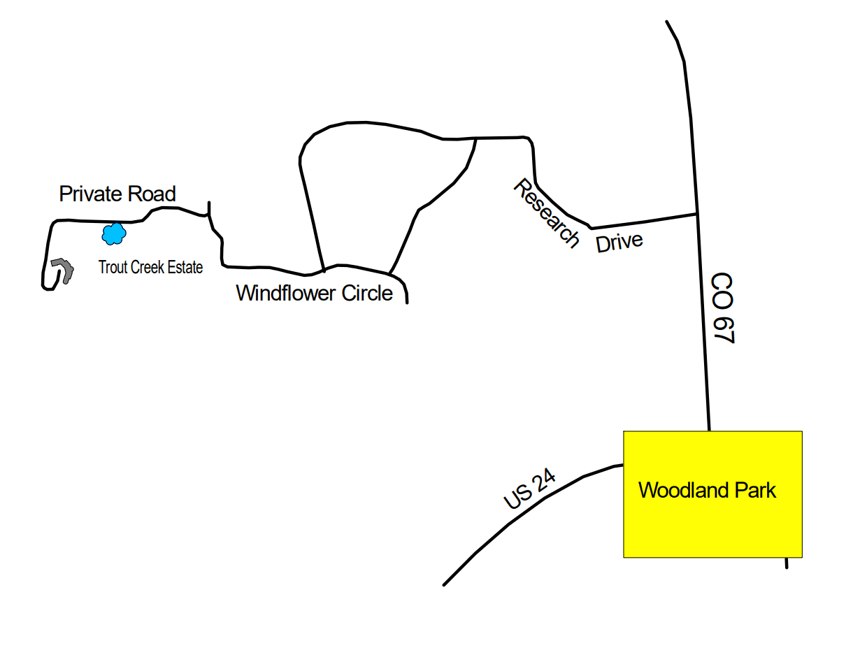 Your GPS navigator will not take you to Trout Creek Estate. When you reach Woodland Park, you will need to follow the written directions or map below the old-fashioned way.